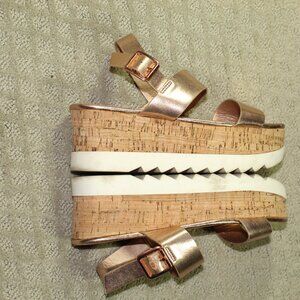 Madden Girl Sugarr Women's Size 7M Pink Sparkle Platform Sandals