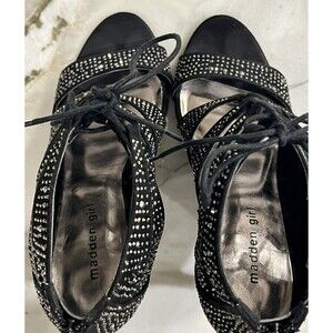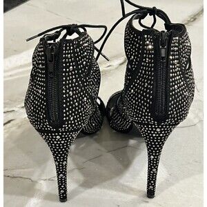 Madden Girl Sz 10 Black Stiletto Heels Rhinestones Gladiator Straps Dacey