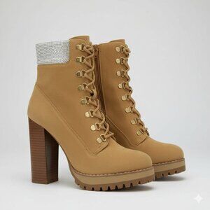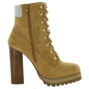 Madden Girl Train-R Faux Suede Rhinestone Combat & Lace up Boots Tan NWOT