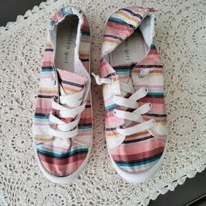 Madden Girl Women's 7.5 Slip On No Tie Colorful Sneakers Rainbow Stripe