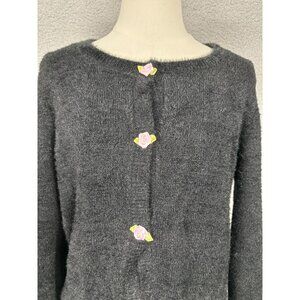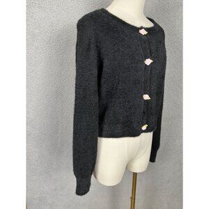 Madden Girl Women's Black Fuzzy Sweater With Flower Buttons M NWT's.