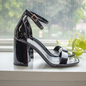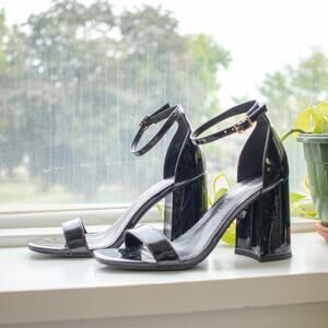 Madden Girl Women's Black Gloss Block Heel Open Toe Sandals Size 7M