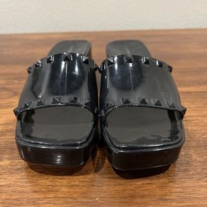 Madden Girl Womens Black Jelly Studded Slide Low Wedge Sandals Size 8.5