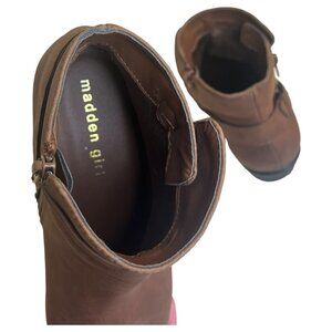 Madden Girl Women's Hunttz Boot Size 7M Ankle Bootie Stacked Heel Side Zip Brown