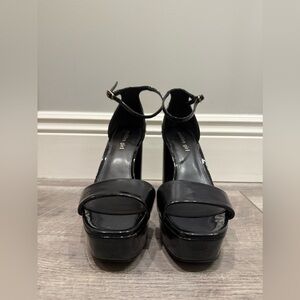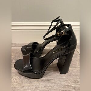 Madden Girl Women's Omega Heeled Sandal Size 9 M Black Patent Leather