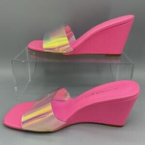 Madden Girl Women’s Rayne Iridescent Slide On Wedge Sandals Pink Size 8M