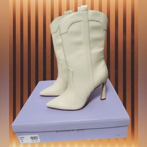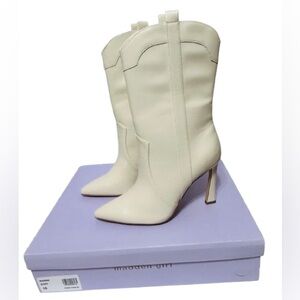Madden Girl, Women's River Flare Heel Western Dress Booties, Size 10M Color Ecru