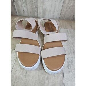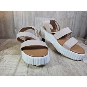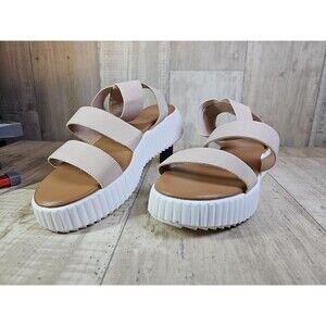 Madden Girl Women’s Sandals Beige Elastic Strap Platform Wedge Size 9 Cute++