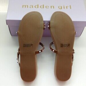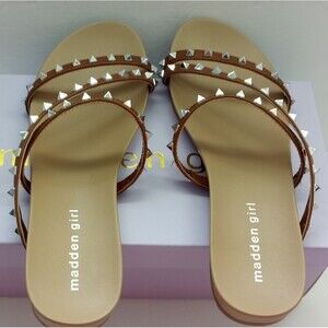 Madden Girl Women's Stud Straps Flat Sandal Beach Brown Slipper Size 6.5 $79