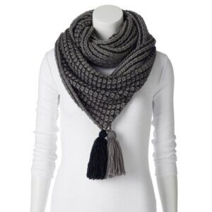Madden Girl Women’s Two-Tone Tassel Infinity Scarf, Charcoal