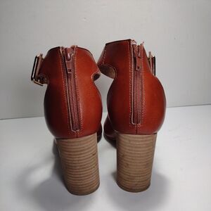 Madden Girl Women's sz 8.5M Reveal ZipComfort Dress Heels Rust Brown 99f