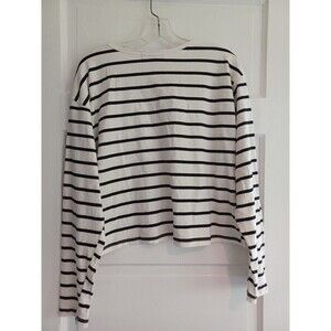 Madden Girl cherry sequin patch long sl. tee XL black stripe cropped NWT flaw