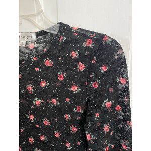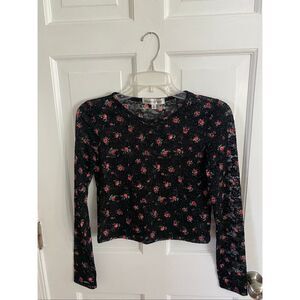 Madden Girl long sleeve cropped lace top in black with red rose floral print. New, never worn.