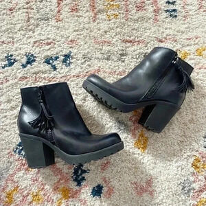 Madden Girl platform heeled booties in faux leather. Size 8. Has traction on the soles. Excellent used condition