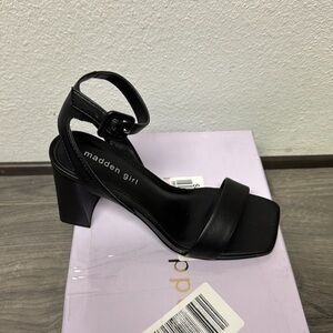 Madden Girl womens Winni black pleather open square toe high heel sandals
