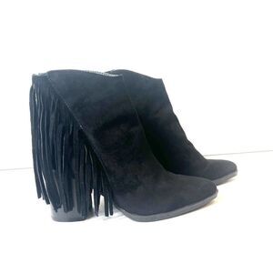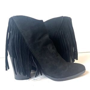 Madden Girl Black Suede Fringe Ankle Boots Women's Size 7.5B Heeled Boots Shaare
