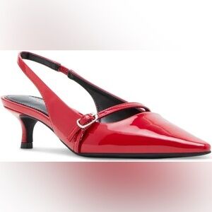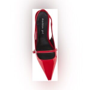 The classic kitten heel slingback gets a sophisticated update with the Madden Girl® Krystall point toe pump. A slender Mary Jane strap across the top gives this Madden Girl design its delicate silhouette and provides extra support for your step. These bicycle toe designed low top pumps have aluminum toe support. Crafted with polyurethane (PU) upper, comfortable synthetic rubber lining and insole, and thermoplastic polyurethane outsole.