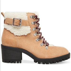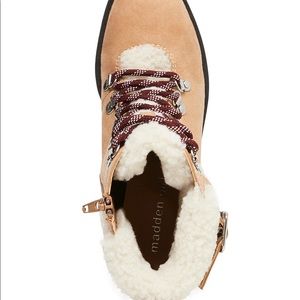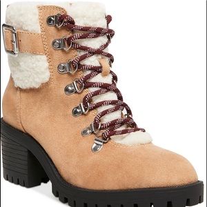 Plush faux fur puts a cozy twist to a rugged hiker design complete with a feminine boost in the platform heel profile of Madden Girl's Hidde booties.