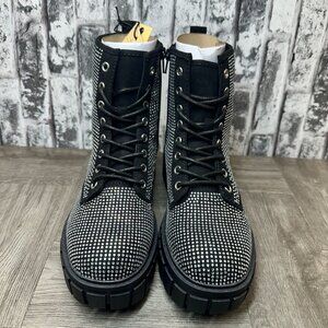 Madden MNYC Women size 8 Chucky Combat Black Rhinestone Boots