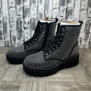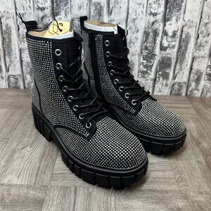 Madden MNYC Women size 8.5 Chucky Combat Black Rhinestone Boots