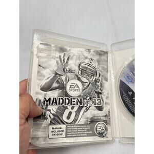 The product is Madden NFL 13 for the Sony PlayStation 3, released in 2012. This sports video game is part of the Madden NFL Series and is published by EA Sports. It carries an E-Everyone rating and is designed for players to experience American football in a virtual setting. The complete game includes the original box and all the included accessories, making it an ideal choice for fans of the sport looking to enjoy a classic installment of the Madden NFL franchise.