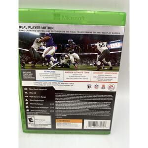 The product is Madden NFL 19 for Xbox One, complete in box (CIB) and fully tested to work perfectly. It is rated E for Everyone and falls under the sports genre, specifically focused on football. The game includes features such as a manual, multiplayer mode, and online playability, making it an exciting choice for fans of the sport. Published by Electronic Arts (EA), this version is designed for NTSC-U/C (US/Canada) region consoles.