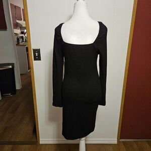 Black clingy dress long sleeve built in bra pads arm pit to pit 14 1/2 38 inch long