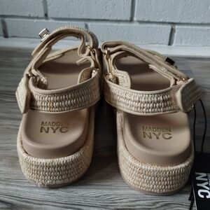 Madden NYC Big Mona Chunky Platform Sandal Natural Raffia Women's Size 11