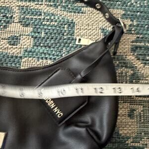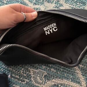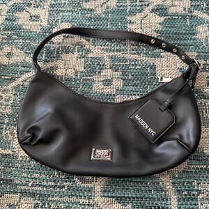 Madden NYC Black Faux Leather Shoulder Baguette Bag Y2K Style Adjustable Strap