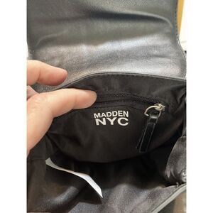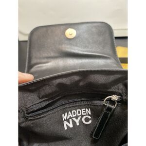 Black Mini Madden Bag is 6"x6", has a long adjustable crossbody strap. Man Made Material. No spots, no tears, no marks. Comes from pet free, smoke free home.