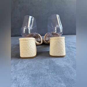 Madden NYC Block Heel Slip On Sandals Woman’s SZ 9 Cream Textured Beaded New