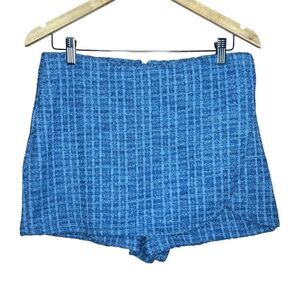 Madden NYC Blue Long Sleeve Tweed Bomber Jacket Tank Top Skort 3 Piece Set