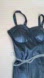 Designed in a structured lightweight boucle fabric with shaped bra cups, tailored front princess seams, and a smocked back bodice for the perfect fit. Adorned by a silver chain belt with dangling heart pendant.