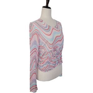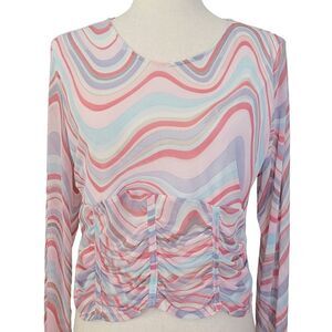 Madden NYC Multi Color Ruched Long Sleeve Cropped Top Size XXL Youth