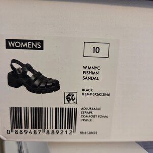 Madden NYC, NWT, Faux Leather, Black, Fisherman Sandals, Adjustable Straps, Comfort Foam Insoles. Size 10. All man made materials. These have odor reducing technology. Heels measure approximately 2.5". Smoke free home.