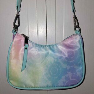 Madden NYC pastel tie dye small crossbody with guitar strap.