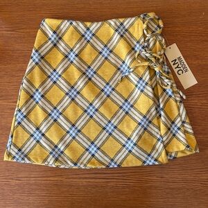 Madden NYC Side Lace Yellow Plaid Mini Skirt Preppy Y2K Academia School Girl