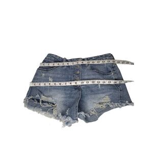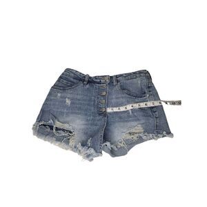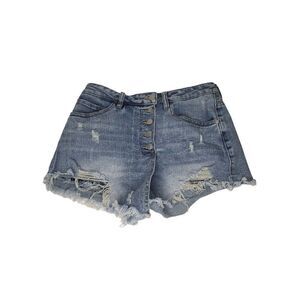Madden NYC Skort Women Sz 5 Super High Rise Medium Wash Button Up Distressed