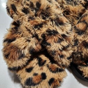 Madden NYC Soft Faux Leopard Fur Platform Sandals / Slippers Women's Size 9 EUC