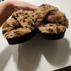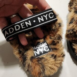 Madden NYC Soft Faux Leopard Fur Platform Sandals / Slippers Women's Size 9