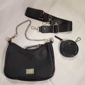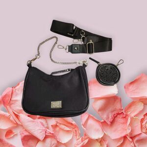 Madden NYC Sparkle Black Convertible Satchel Crossbody Bag w Earbud Case