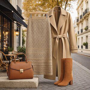 Quiet Luxury Neutrals — Pair with a cream turtleneck, chocolate boots & structured tote for boutique elegance.