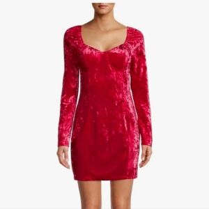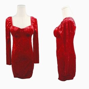 Madden NYC Velvet Corset Bodycon Dress S XS Red Long Sleeves Sweetheart Neckline