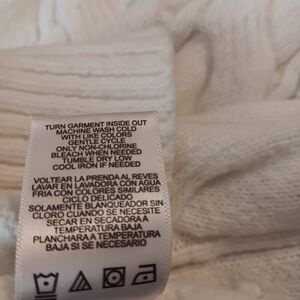 Classic sweater from Madden NYC size medium. Cable knit pattern on the front and back with a crewneck and ribbed cuffs and hem. Bright white, 100% polyester, soft and comfortable. Armpit to Armpit 21in, length 25in. Excellent condition