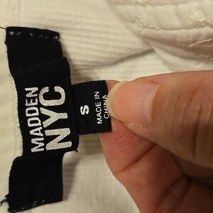 Stylish white top with eyelet details. Features a flattering cut and tie closure.
