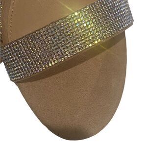 Blush faux Suede • Strap at Ankle with Buckle . Top Strap is all Rhinestones •