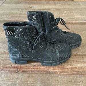 Madden NYC Women's Chunky Combat Boot With Rhinestone And Shimmer-Sz 5