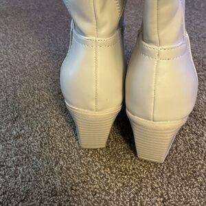 The Madden NYC Boots in size 9 for women are a stylish and versatile pair with a tall, knee-high shaft featuring intricate embroidered detailing, perfect for a western country cowgirl look. Made of faux leather with a comfort foam performance insoles designed for comfort, these boots have a mid heel height, making them suitable for various occasions from casual to formal. The ivory color and cowgirl character reflect a unique theme that is sure to make a statement. Perfect for rodeos or going out in style, these boots are a fashionable choice for those who love the cowboy aesthetic.
