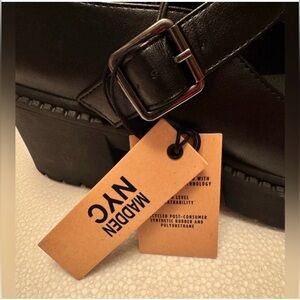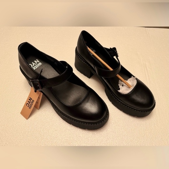 Madden NYC Women's Lug Maryjane Shoes Size 9 Elevate your look with these chic black strap heels from N.Y.C. Perfect for any occasion, these shoes combine style and comfort effortlessly.