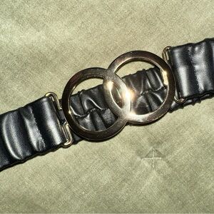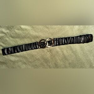 • Ruched Stretch Belt; Double Ring Buckle Closure